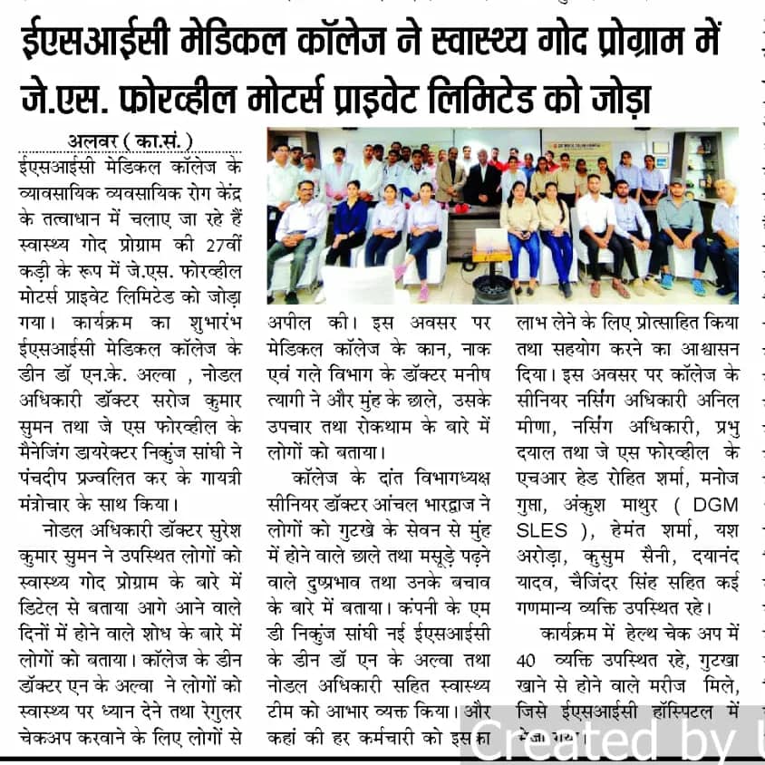 J.S Four Wheel Motors Pvt Ltd Factory Health Adoption Programme